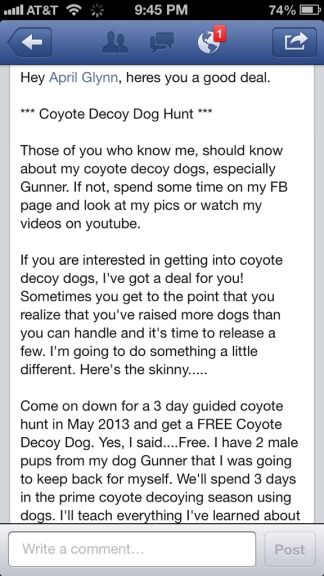 This is not true, but I can see where Leonard may have thought it since I have been vocal from day one of TT's outing. I have never even met him in person. I taught him nothing. In fact, I never would claim to have taught anyone anything about hunting besides my kids. So I need to come out and say that anything TT claims did not come from me. My history with him is that I rec'd a free call from him back before he was an internet hero. That call I liked and used and took pics with kills using it. Like an idiot newby, I did that. Then the yankee came down to TX and killed his first cat with a friend of mine, and goes back home and falls thru some ice and decides to become the world famous expert that he claims to be. I don't know jack chit about dogs or parvo and could care less about that part of any of it. But I know TT is full of himself, had zero experience when he started his promotion, and gives credit to no one. That is why I do not like him and never have since that day. That is all.